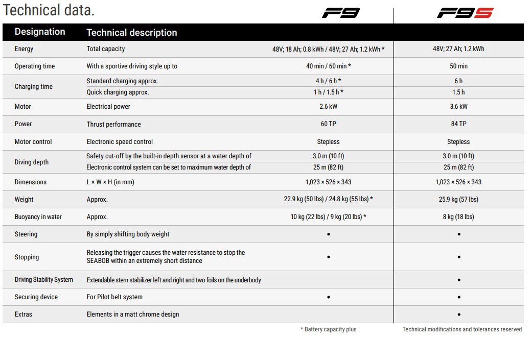 SEABOB F9 Series vs. F9 S
